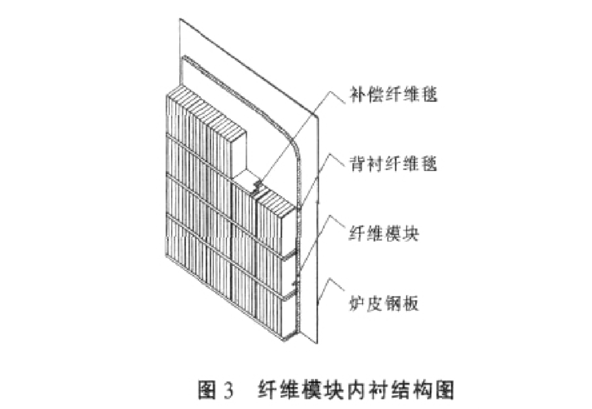 以下為全纖維結(jié)構(gòu),陶瓷纖維模塊+陶瓷纖維毯爐襯示意圖。